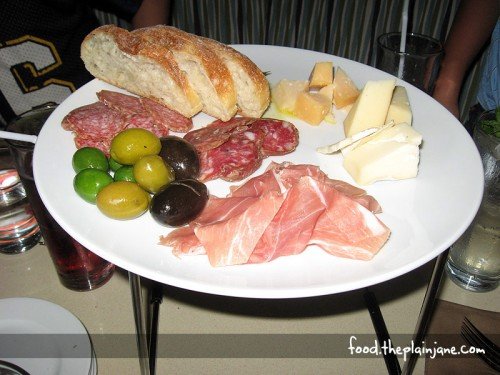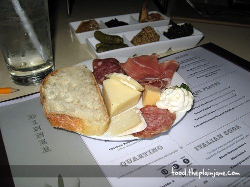 We started off with drinks – a variety of Italian sodas all around. At first I got the Pomegranate Soda, but I didn’t really care of it after a couple of sips. Our waitress had brought a Mint Soda for us to try and after it was passed around, we agreed that we loved it and she brought us a few of those to start. Then we ordered some cheeses and meats for a lovely Antipasti Platter.