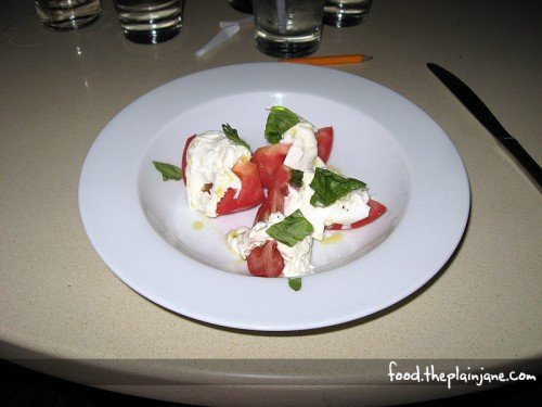 I told our waitress how much I adored the burrata alla panna and she happily told me that they serve that particular cheese on their Caprese Salad. My face lit up with happiness at this notion and she asked if I would like to have it – and I happily answered yes!