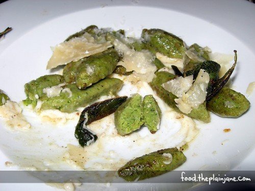 As for me, I got the Spinach-Ricotta Gnocchi for my meal. My photo was taken after I had eaten a few. It’s in a brown butter, sage and cheese vellutata sauce. The sauce wasn’t too rich or overpowering, but really complimentary with the gnocchi. The gnocchi were were soft, tender and melt-in-your-mouth good, which is what I look for in a good gnocchi. These are different than traditional pasta as they are little dumplings full of love and goodness.