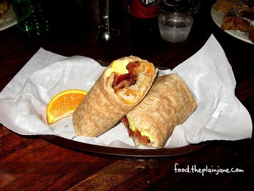 Jake got the Breakfast Burrito which had scrambled eggs, bacon, and hash browns in them. He was in love with this burrito. I had to admit that I was crushing on it as well after a couple of bites. The ratio of items inside the burrito was really good – and the hash browns were really excellent! I’m really, really picky about my hash browns. I like them to be super crispy on the outside and almost creamy on the inside (like the ones at Keith’s, which are my absolute favorite hash browns ever) and these fit the bill. Jake liked this burrito so much he almost ordered another one! But he refrained.