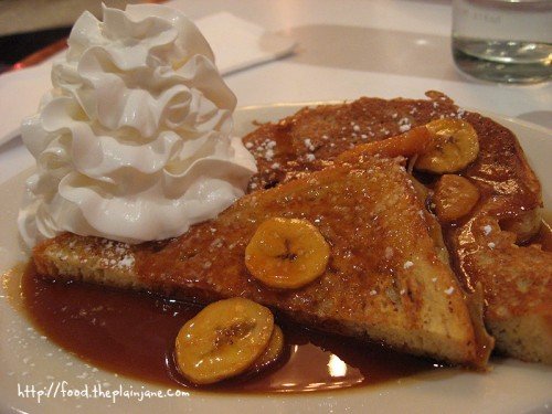 The fifth and final course was one of their breakfast menu items served to us for dessert: the Bananarama’s Foster French Toast – brioche french toast topped with bananas with a spiced banana caramel vanilla rum sauce with whipped cream and a touch of powdered sugar. I feel my blood sugar rising just thinking about this dish again.
