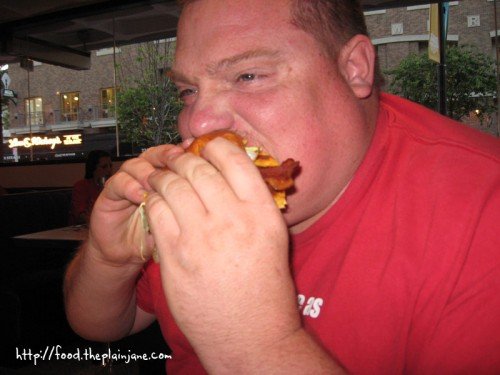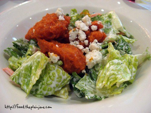 As soon as the dish was set down in front of me, the smell of the buffalo chicken wafted up and tickled my nose – definitely spicy! The mix of flavors were quite good here – the creamy blue cheese dressing helps to knock down some of the spiciness of the buffalo chicken as you eat the salad. Jake totally loved this and kept saying, “If you don’t like your chicken, I’ll eat it…” I ended up giving him most of my chicken because A) he kept asking for it and B) it was actually pretty darn spicy.