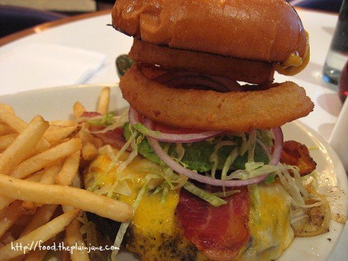 Next up (Course 4!) we got to “Build Your Own Burger” – we had a checklist with a TON of different options – from your kind of meat (Angus Beef, Chicken Breast or Veggie Burger?) to your kind of cheese (a TON of different types) to the kind of sauces you wants and any extras. See mine above? Doesn’t it look towering and frightfully large? Well, it was. I ended up getting beef with 2 kinds of cheese (fontina & cheddar), an herb mayo sauce, avocado, bacon and onion rings. I had to take the onion rings off just to put the sucker in my mouth.