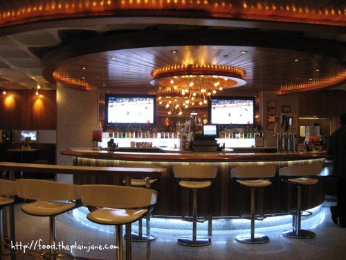 The bar with their fun, retro looking bar stools. I also love the chandelier/light fixtures in this place – they remind me of those retro 50’s looking star bursts.