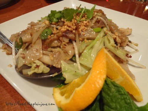 Our last shared entree was the Pad Thai, but with flat rice noodles instead of the usual skinnier noodles served with Pad Thai. I love the chew of the flat rice noodles. This wasn’t quite as flavorful as the Pad Ginger dish, but it was still good – though a pretty standard kind of Thai dish. I think I’m going to start ordering the flat rice noodles more often, I found that I really preferred them over the usual noodles this dish is served with. Full of yum!