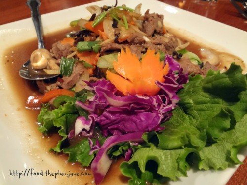 Another item we shared was this Pad Ginger dish. We got all of our entrees at level 4 spicy, which wasn’t too spicy at all. I picked out this one and decided to get it with beef, though the beef was not the most tender. It would probably be better with pork or chicken, but I was in a beef mood that day. The flavor though was excellent – I love dishes with ginger in it and this was no exception. The mushrooms were really nice and tender and the sauce on this dish was so flavorful. The ginger wasn’t overpowering, just a good background hint.