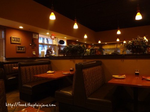 We were seated in a booth in a nicely decorated restaurant. There’s a little fountain in the corner.