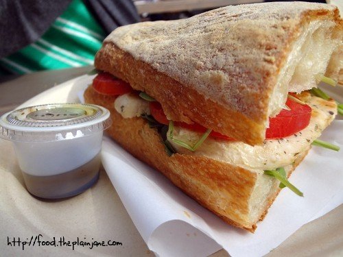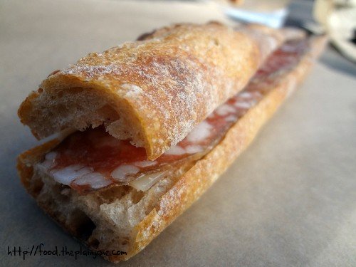 As for me, I had this Ficelle (which is French for “string”) sandwich with salami and a hard Spanish goat cheese. The bread was very long and thin. It was kind of difficult to chew the bread because it had hardened and the very thin slices of salami and cheese wasn’t doing very much for me. I noticed later that the sandwiches are actually from Cube Cafe and not made at Broome Street, which explains why it didn’t taste very fresh to me. Probably better to try this one over at the actual Cube Cafe instead of just an outpost.