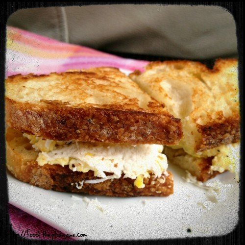 So I made a Myzithra and Egg Breakfast Sandwich. On sourdough bread from Bread and Cie.
