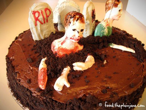 Halloween is right around the corner! And if you need a rockin’ cool cake to make for your Halloween party (or any other zombie related event), you should try your hand at making a zombie graveyard cake. It’s not too bad to make this sucker and the best part is that is doesn’t have to look neat – zombies like gorging on flesh, they’re not exactly concerned with how they look, you know.