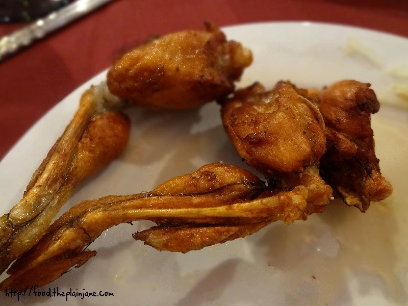 But here, alone, on this plate you can totally see it. FROG LEGS. It was kind of weird seeing it all full and in it’s froggy glory… but I tried it. The first bite wasn’t too bad. I thought, “it kind of tastes like chicken”. But the second bite made me change my mind since it tasted more like a mild chicken flavor mixed with seafood and it weirded me out. Suffice it to say, I didn’t take home any leftovers of this one.