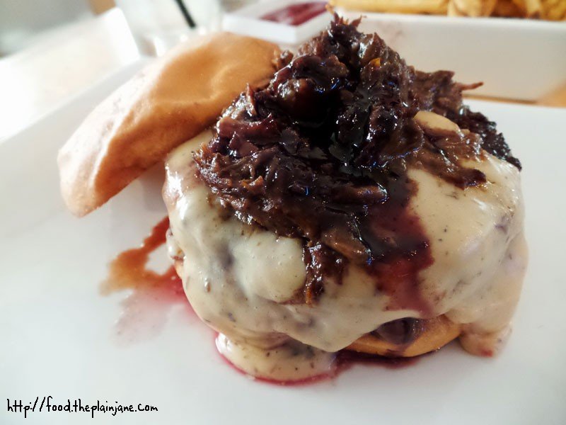 Dear god… LOOK AT THAT CHEESE. It perfectly covers the whole patty and is melted oh-so-nicely. The short ribs are stacked on top and it’s not overkill on the short ribs either. The burger will still fit in a normal sized (Mary sized) mouth!