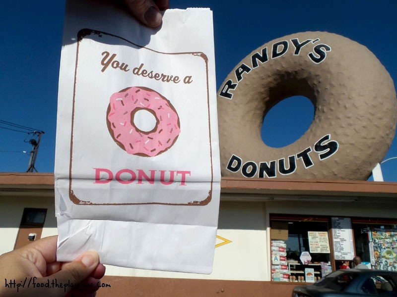 I did peek at the map eventually though… I mean, come on. I had to know where we were! And then I realized we were inching closer and closer to LAX and we had to make a pit stop at Randy’s Donuts! They had these awesome “You deserve a donut” bags that I adored and after excitedly pointing them out, Jake asked the nice lady if we could have one (we had a box of donuts and I NEEDED that bag).