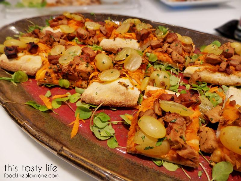 One of my favorites of the night were this Banh Mi inspired flatbread with grapes. The magical elements in this flatbread are: lemongrass paste, garlic, chicken breast, soy sauce, carrots, a pinch of sugar, rice vinegar, green seedless California grapes, cilantro and a jalapeno pepper. The “flatbread” used here was just a cooked pizza dough and then you top it off with the chicken and other goodies. I loved the bright, fresh flavors and again… the grapes added a really lovely little touch of sweetness that complimented the rest of the dish. It tasted really yummy with the chicken, carrots and other fresh flavors.