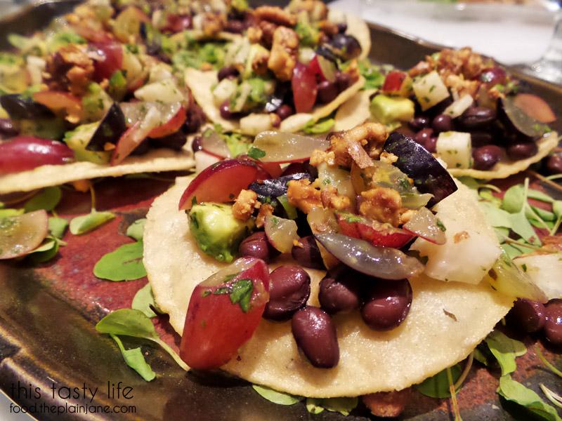My favorite dish we tried that night were these little mini toastadas that were not only super cute but super tasty! This one was completely vegetarian and really packed with a ton of flavor. It includes: black and red seedless California grapes, jicama, avocado, cilnatro, jalapeno, lime juice, vegetarian refried beans, and toasted walnuts.