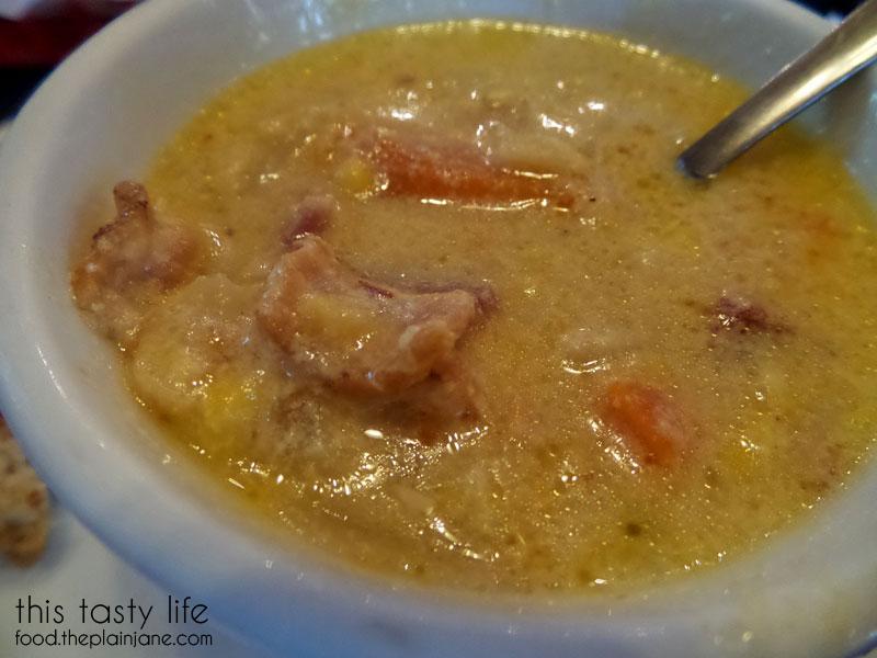 A decided to order the soup of the day, which was a corn chowder made with bacon, as her meal.