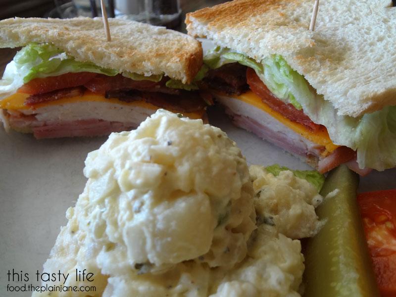 I decided on getting the Club Sandwich with potato salad for $6.85. The club sandwich came with freshly made turkey and ham, slices of bacon and American cheese along with tomato and lettuce. No strangely processed meats here, my friends. This is the real deal. I got excited about the crispy bacon and just fell in love with this simple sandwich.