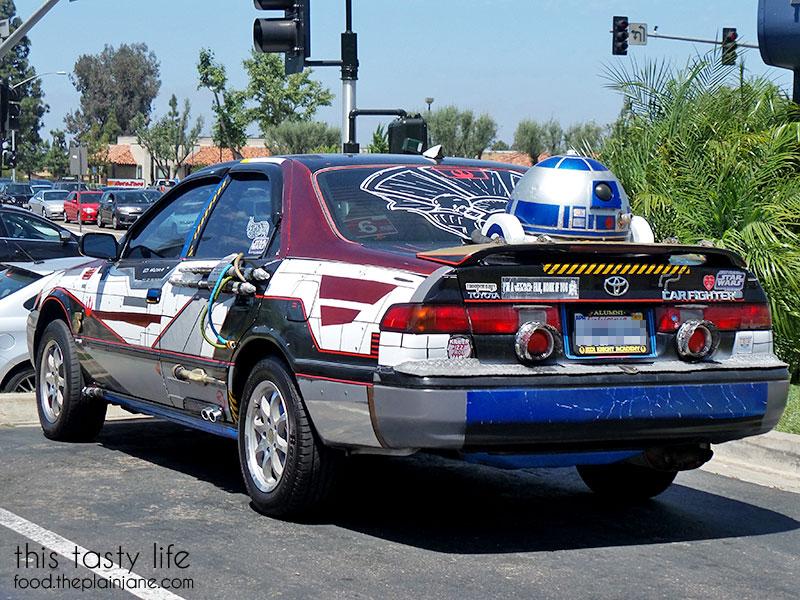 This past Saturday, Jake, S and I were headed down south and S pointed out a something and said, “Dad, look, R2D2!” I looked around but I didn’t see it, assuming it was some kind of sticker or something on the back of the car. Jake proceeded to turn around the block to go back and look at the car and I gave him a look like, “Do we really have to go back to see at this?” He didn’t really say anything else and when we came upon the car, I could see why he wanted me to look it.