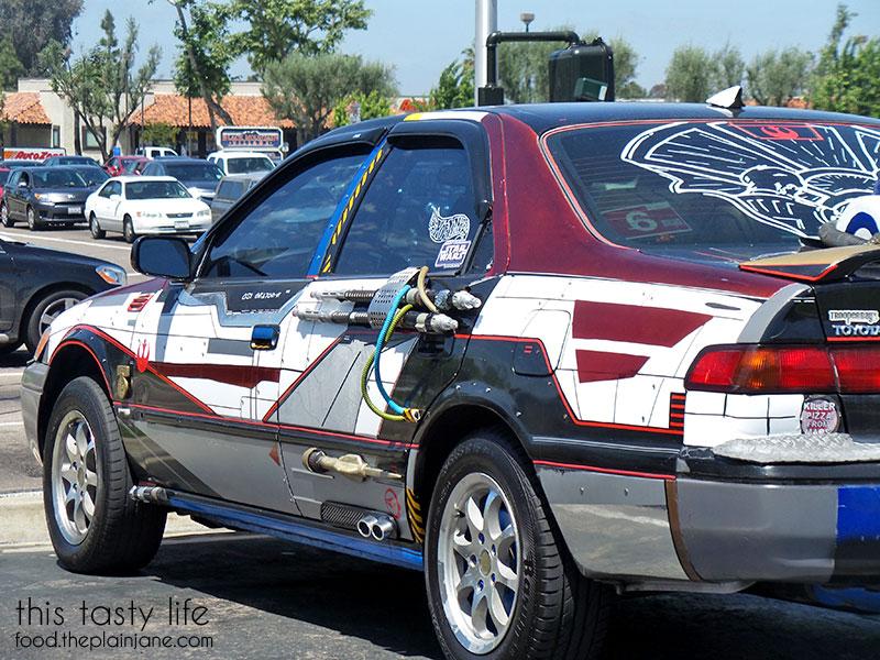 We pulled into the parking lot at Vallarta Express to check it out a little more. Here is the car from the back! Holy cow!