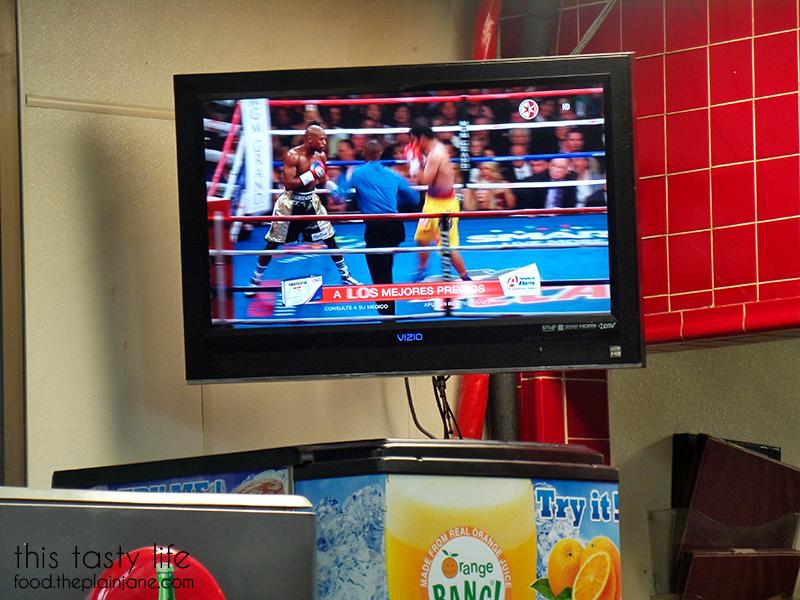 While we were there, we noticed that the Mayweather v. Pacquiao fight was being show on TV. We were wondering if they had paid the big bucks to watch the fight but then we noticed it was being broadcast in Spanish. Mexican TV, yo! They apparently were just showing it on regular TV down there.