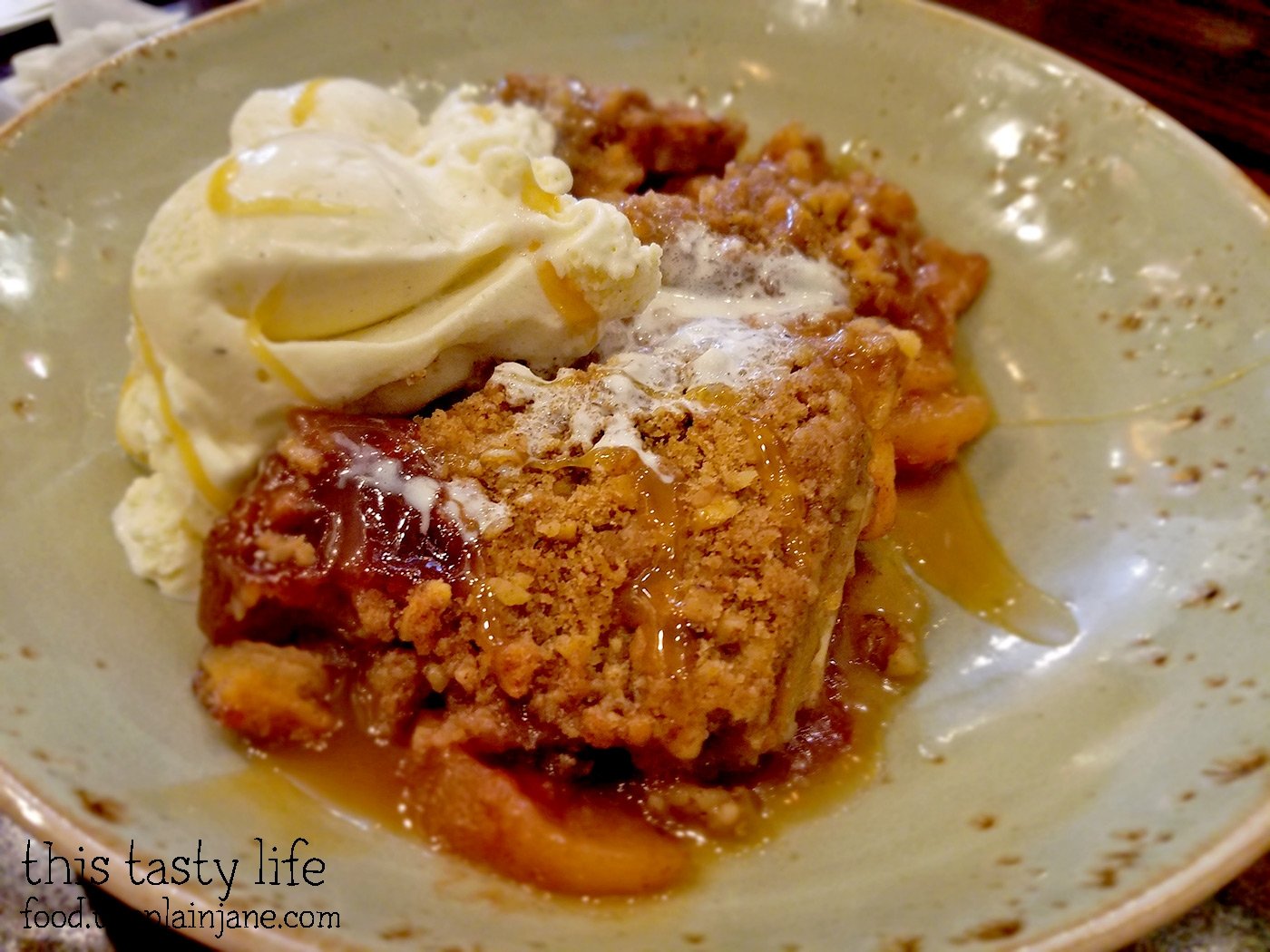 All four of us were in a desserts mood and figured… what the hey, let’s each order a dessert! Carin made the wise decision to order the Apple Cobbler with vanilla ice cream and GHIRARDELLI® caramel sauce.
