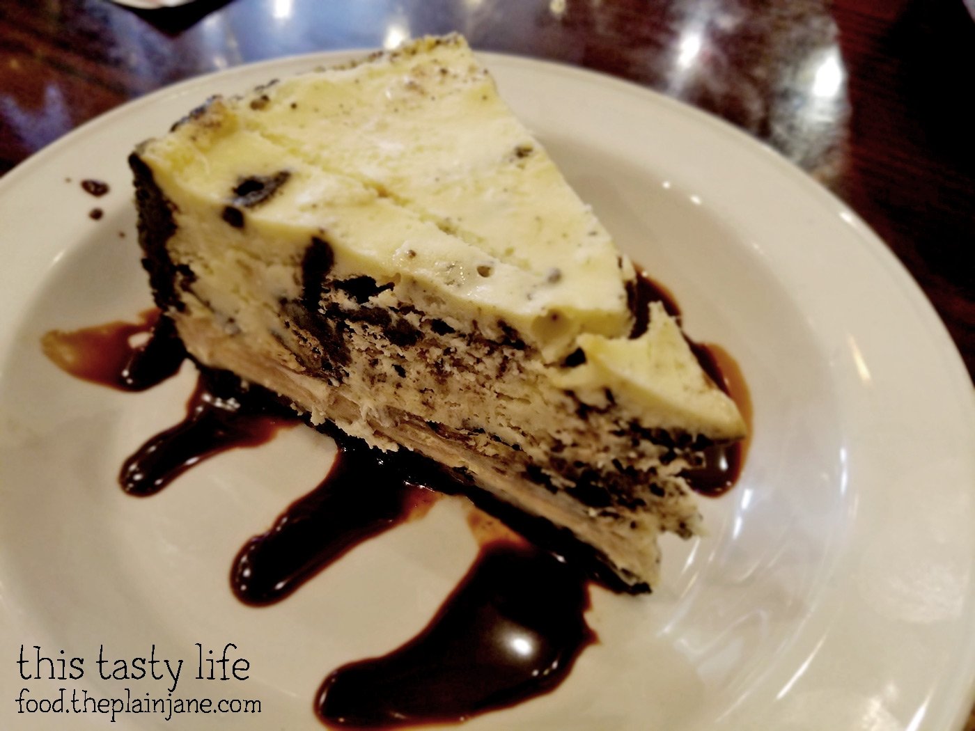 T went with the cheesecake. I’m a cheesecake purist who doesn’t like “stuff” in her cheesecake so I thought this dessert was just okay. I’m a cheesecake snob, I guess. It wasn’t bad, cheesecake is just something I’d rather make at home.