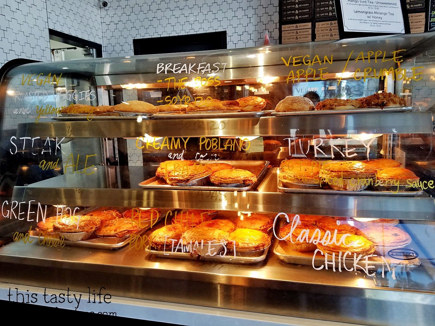 We visited Pop Pie Co right after Thanksgiving so they had Turkey Pot Pies available then. I believe they had stuffing and cranberry sauce inside!