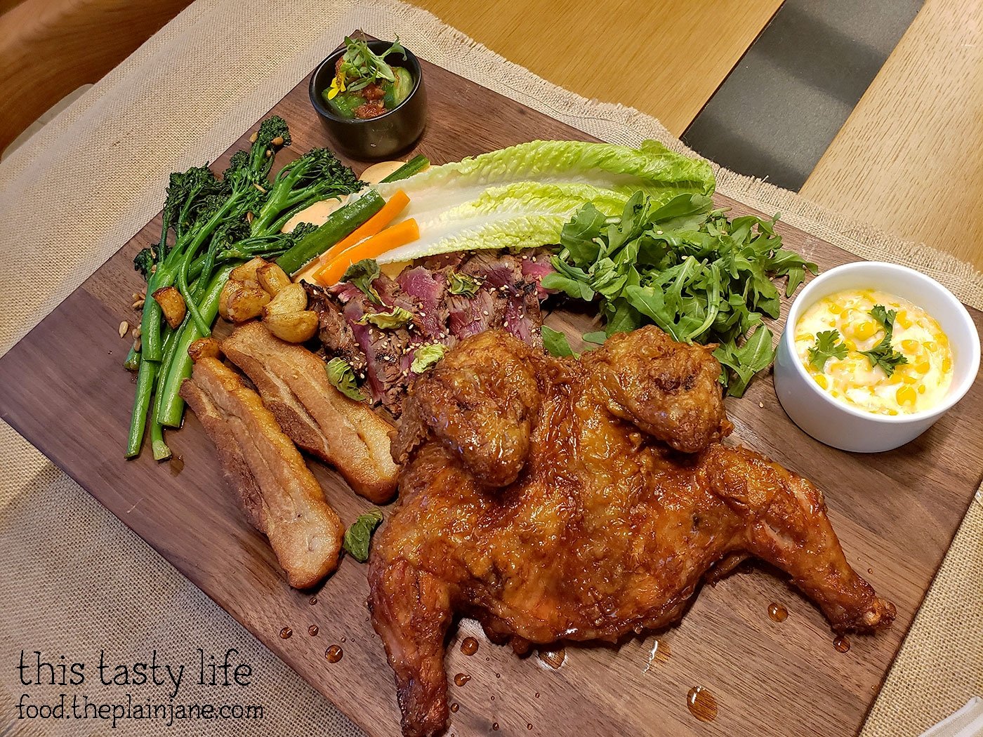 At the far end of the table, they did a presentation of the Bibigo Kitchen BBQ Platter. This is a special dish meant for at least two people that comes with short ribs, honey soy fried chicken, pork belly, grilled veggies, and cheese corn!