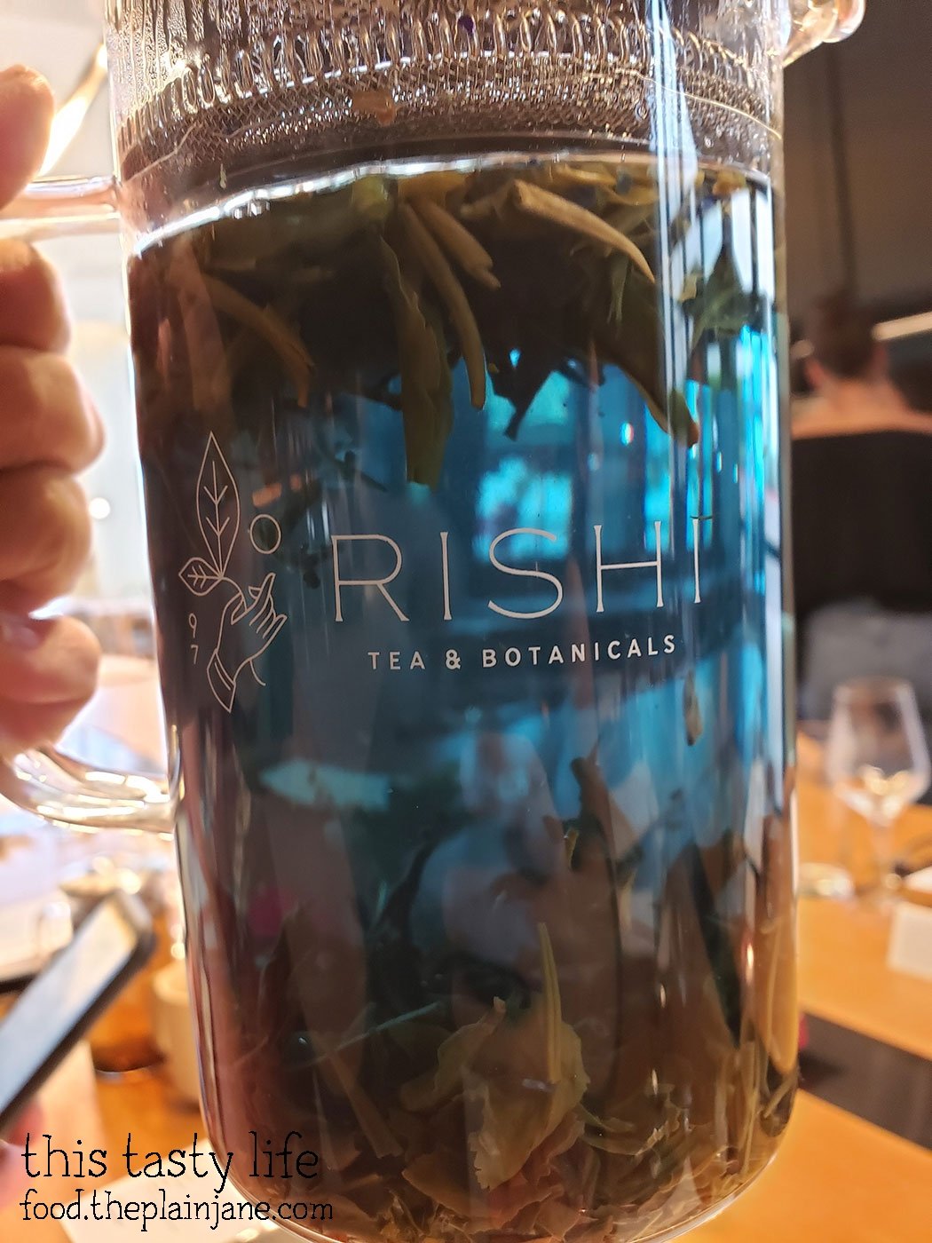 I started out by picking this pretty blue tea called Blue Jasmine. It came in this pretty glass pitcher so you could see the tea leaves steep in the water that turned blue.