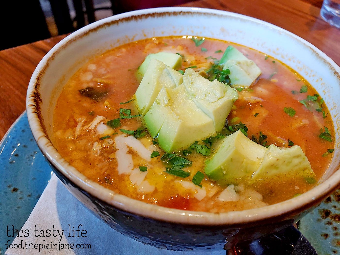 I got the soup and half a sandwich. Chicken tortilla. I added avocado to the soup which was an excellent idea. It adds a creamy touch to the yummy soup. There was bits of cheese on top with chunks of chicken and tortillas. Good flavor overall. Very hearty!