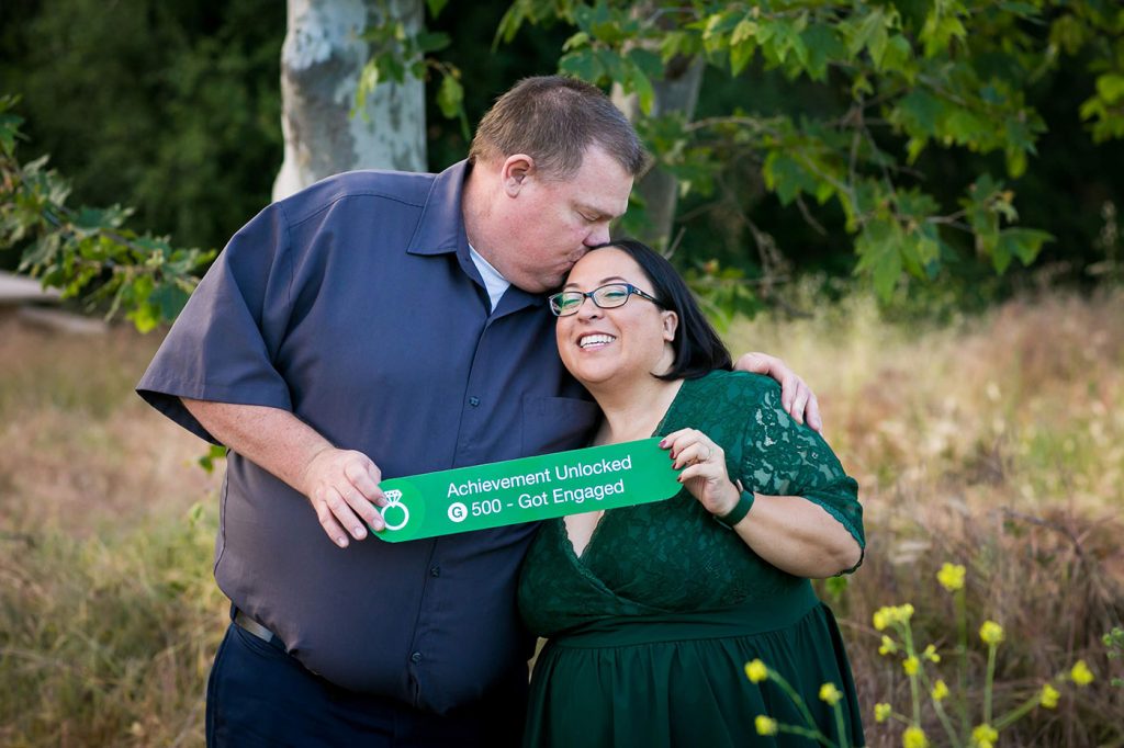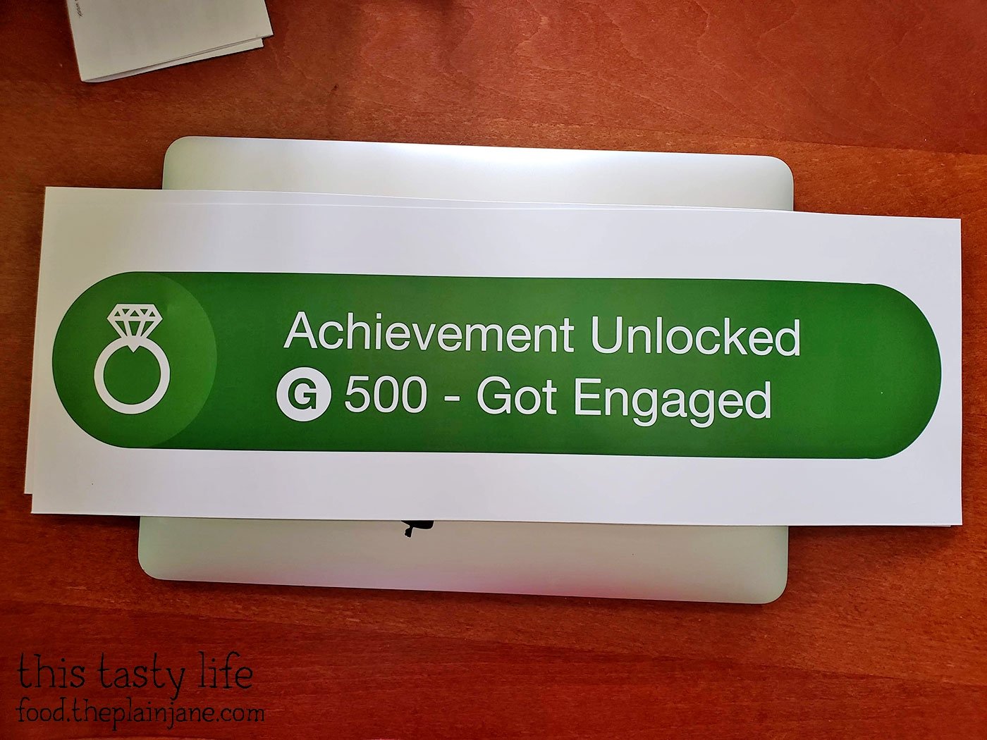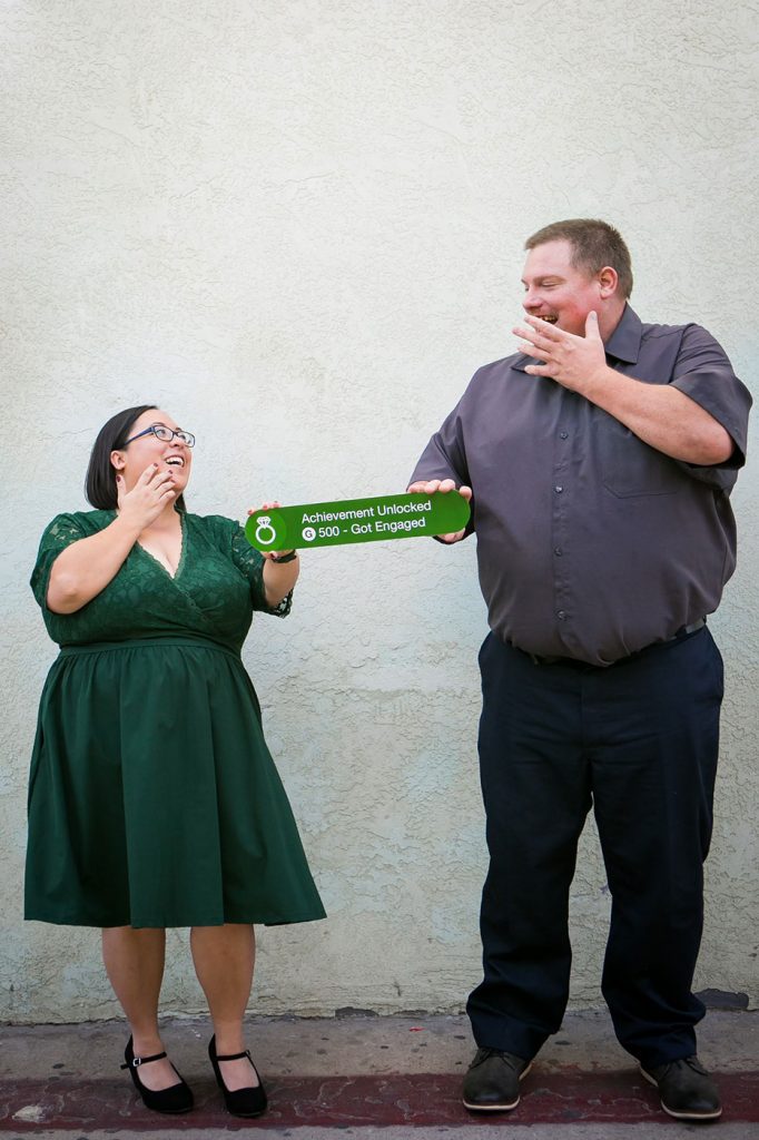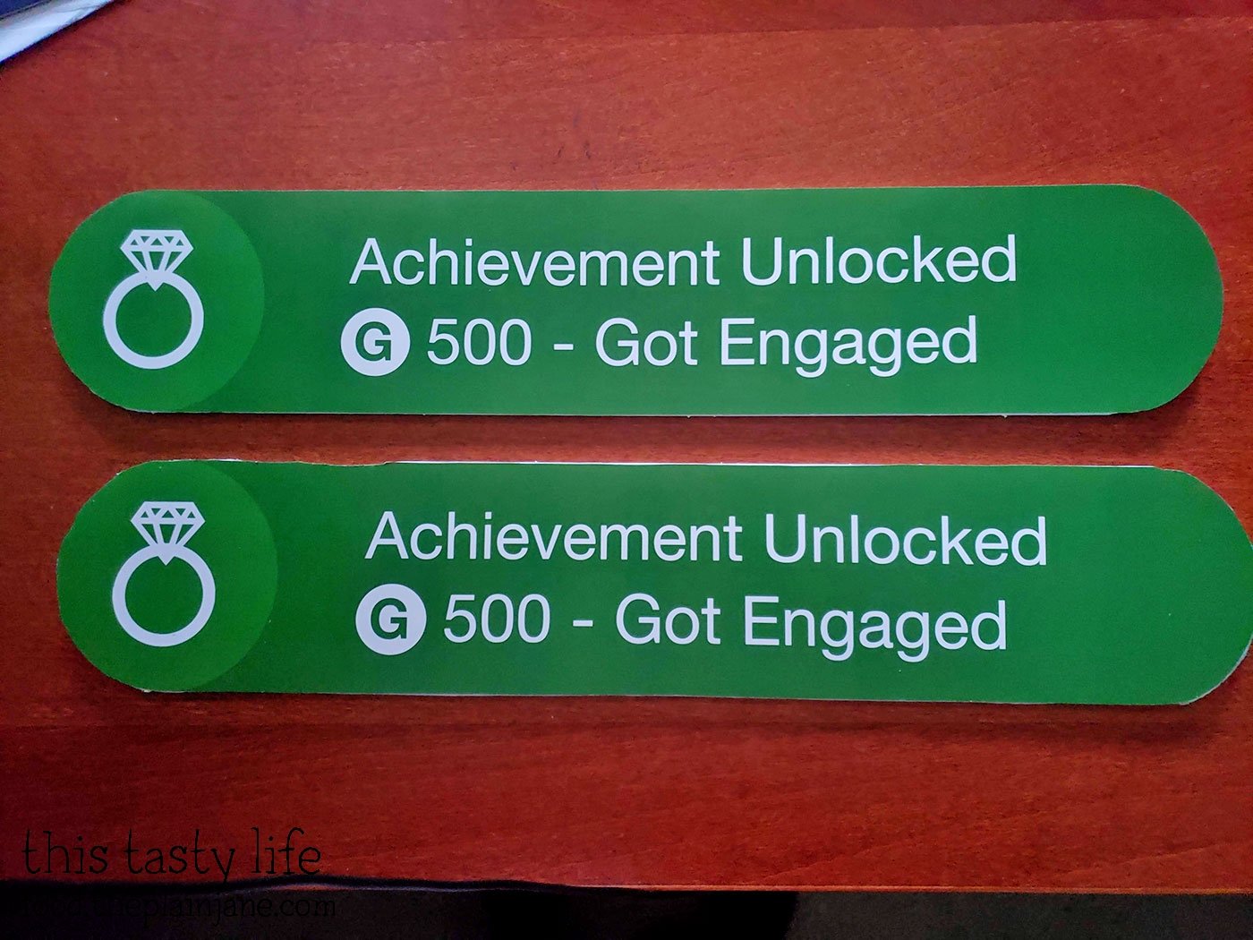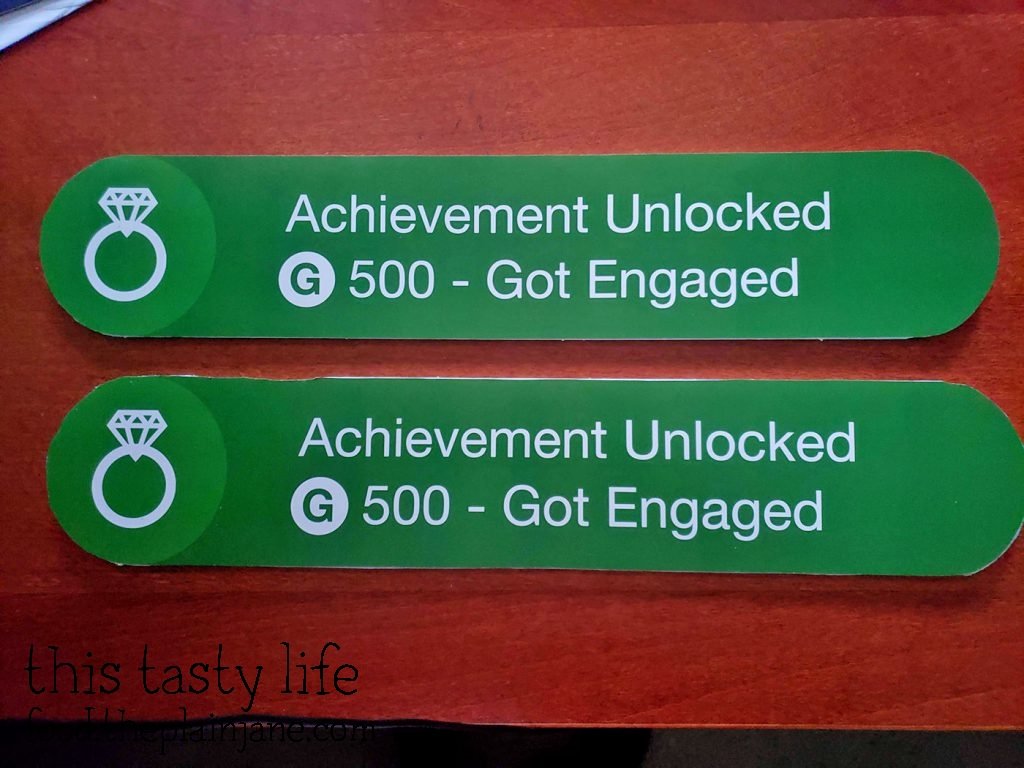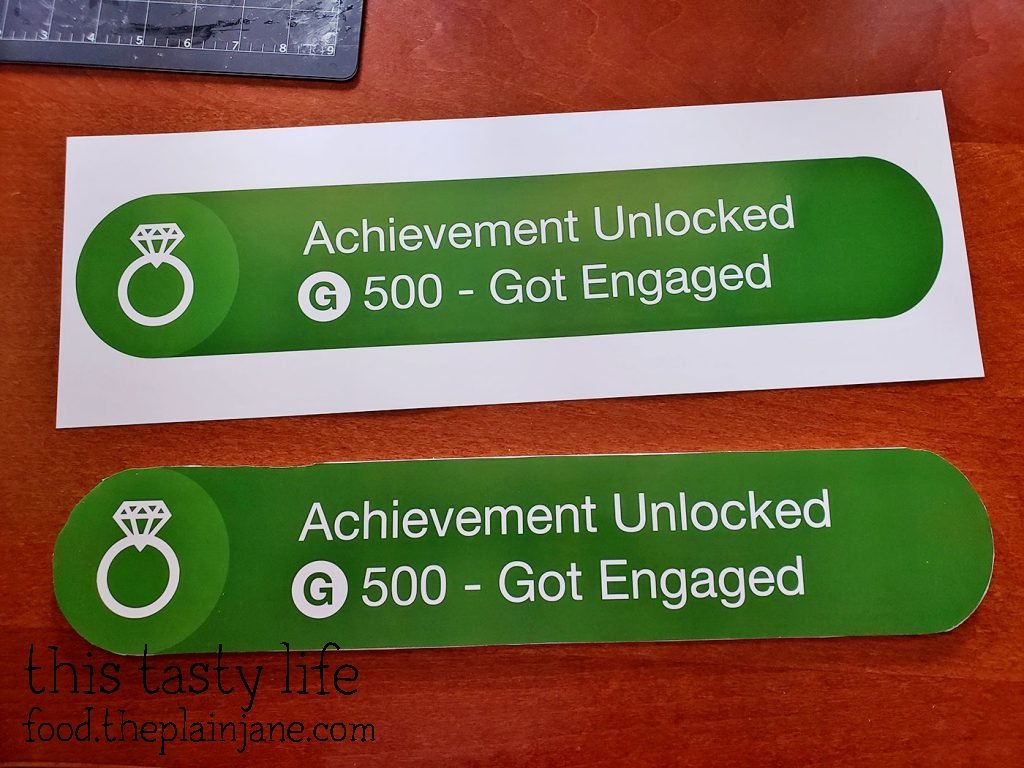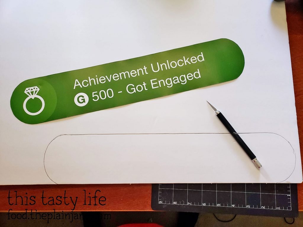 For our photos, I wanted us to have an Xbox Achievement sign. Jake and I are both gamers and we thought it would be fun to have an “Achievement Unlocked – Got Engaged” sign. I thought maybe I could buy one on Etsy but no one made them. I found various t-shirts on Etsy but that wasn’t what I wanted. I also found a few blog posts about how people made their own sign and I decided to do the same thing.