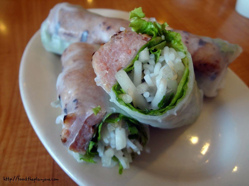 [bbq pork meatball rolls with lettuce, thai basil, bean sprouts and vermicelli noodles – $4.50]