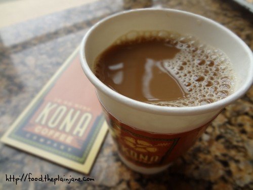 The Kona Coffee Company in Hillcrest is one of the few shops in town that will offer you a 100% Kona coffee (french pressed for you, no less). They also offer 35% Kona blend at a lower price. I started off the day with the blend.