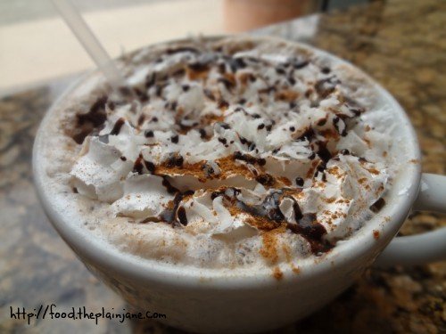 I’ve never had a mocha quite like this one – this one goes beyond just a dash of chocolate in your coffee drink! This is filled with intense flavors, giving the mocha a very tropical taste and feeling with the coconut and banana flavors in the mix. It’s also quite sweet – the mix of flavors and chocolate made this a rich, chocolately drink – enough to make you forget that it even has any espresso in the mix. The cinnamon rounds out the flavor nicely giving it a nice heat and spice that I really enjoyed. Jake and T also enjoyed this one, so it was winner for the coffee and non-coffee drinkers alike.