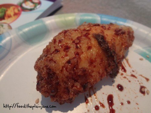 Next up, we headed over to Raku Japanese Fusion Cuisine. They had bowls of veggies out and we thought that’s all that had so grabbed that. It was Spicy Garlic Edamame (good flavor, but really hard to chew?) and sesame asparagus (tasty). Then we were given some freshly made Teriyaki Chicken Wings and we were in love. Super crispy with a light drizzle of sauce – this was our favorite item of the whole day. We tried to go back the next day to get these again, but was way too early. We’re still planning on going back!