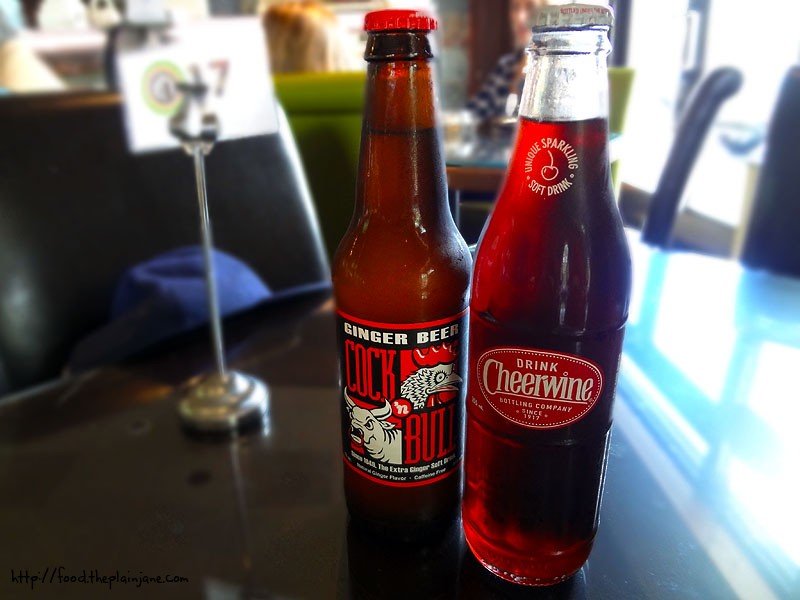 My initial beverage choice was rejected by Jake and he went up and got us some bottled sodas. I told him to surprise me and he got me this Cock ‘n Bull ginger beer which wasn’t too bad. I don’t normally drink full sugar sodas anymore but this one was decent with a good ginger flavor. Surprising to me, I actually liked the Cheerwine a little bit more. I thought it would be full on in-your-face-tastes-like-cough-syrup flavored cherry.. but it actually kind of reminded me of Dr. Pepper.