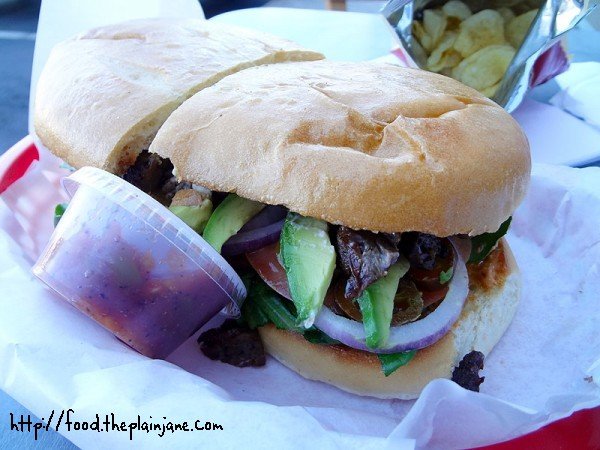 I ordered just a plain old steak torta, just wanting to try something “basic” and simple here for my scouting mission. I must say I was pleasantly surprised. The steak was well seasoned and marinated – cooked perfectly as well. It was juicy and cooked to medium and stacked high with lots of fresh veggies – red onion, tomatoes, green leaf lettuce and slices of perfectly ripe avocado.