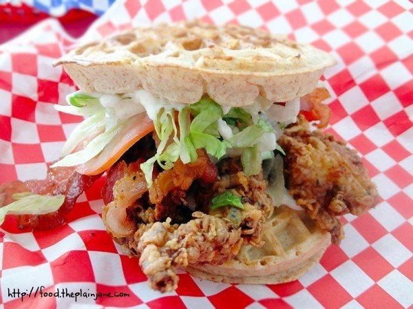 Jake ordered a Chicken n Bacon waffle sandwich with a multiple grain waffle.