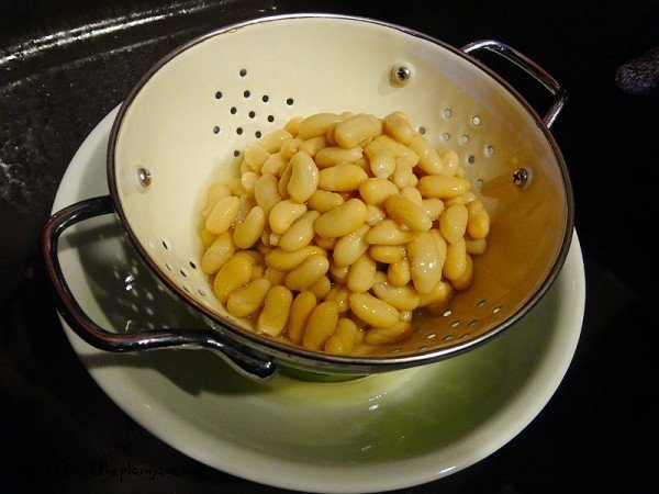 These creamy looking beans need a drain after the lid is popped off, but save that “bean juice”! We’re going to need it again while making the bean sauce.