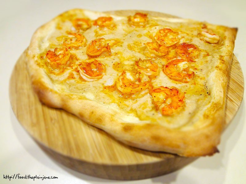 Plop your shrimp across your misshaped pizza and then pop it back into your hot oven. Bake for 10 minutes or until golden brown.