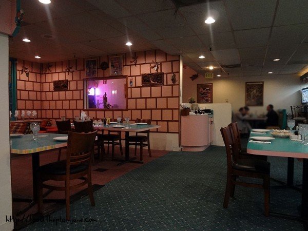Now, I know you should never judge anything by it’s cover… but wow. The pink and teal colors of this place are really not doing it any favors and why on earth does the carpet change color once you get into that “pink” room? Who knows…