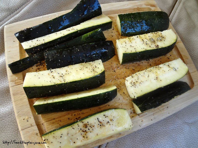Along with the potatoes I cut up some zucchini from my dad’s garden – we were overflowing in the zucchini this summer and I decided to grill these up. A quick drizzle of olive oil and a dusting of salt and pepper and these veggies were ready for the grill.