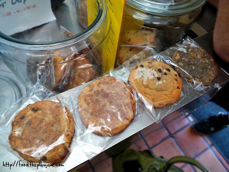 I spied these jars of cookies when we were getting ready to go. Their menu says they have DELICIOUS cookies so I couldn’t pass those up. These are not made at the shop (I forgot where they’re made) but we tried one of each anyway.