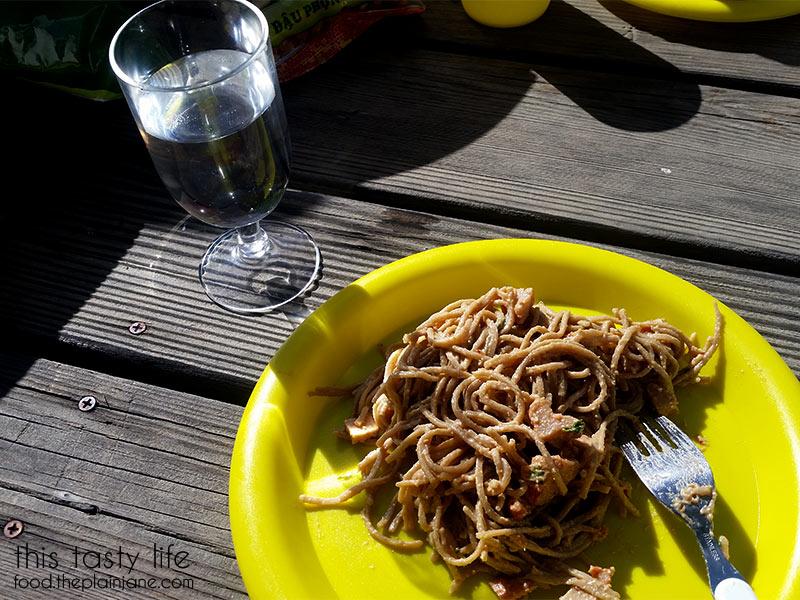 After picking apples we went over towards the winery and found a picnic bench to sit at. I had made some soba noodles for lunch with grilled chicken and peanut sauce.