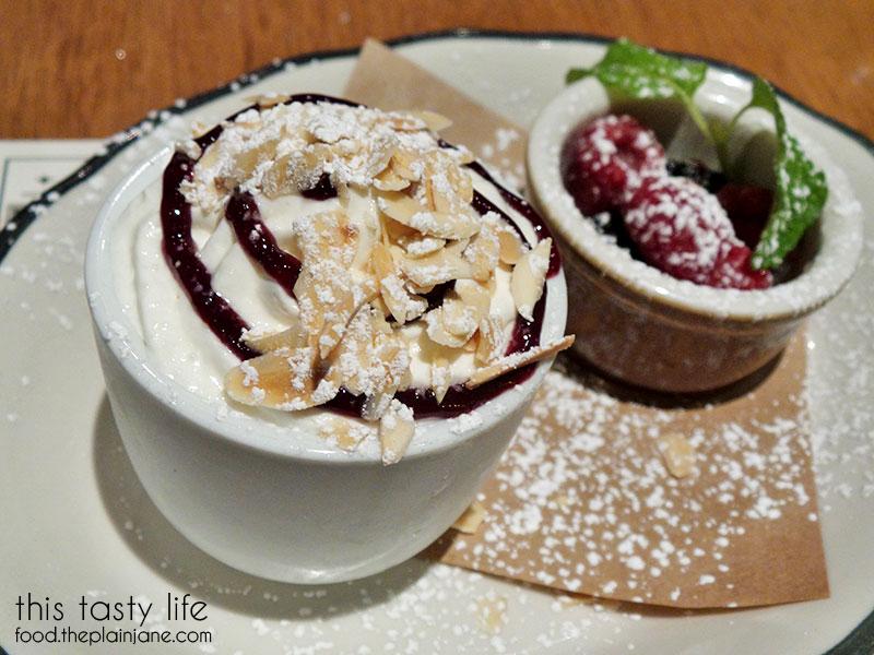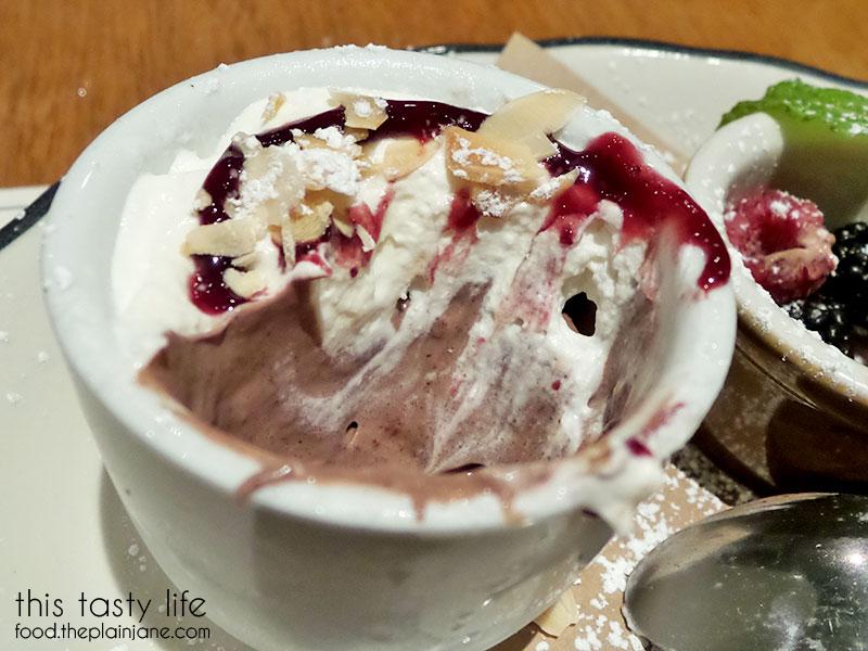 I didn’t take a photo of the dessert menu so I don’t know what this is really called, so I’m just calling it “Chocolate Pudding”. It had a much fancier name, I assure you. On top there’s a bit of fresh whipped cream and a swirl of raspberry sauce and sliced almonds.