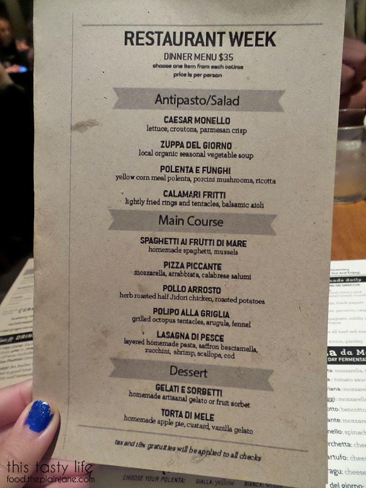 Monello’s Restaurant Week menu for dinner – three courses for $35.