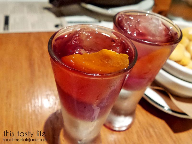 Chris suggested this drink for Jake to try. It’s got cucumber lime grappa infusion, pressed lime, bitters and ginger beer in it (the menu online says cinnamon but it’s changed to cucumber lime). Jake was hesitant because he’s not really into cucumber OR lime, but he went with it and actually ended up really liking the drink. I thought it was a nice balance of flavors and I love the bit of ginger beer hinting around in the background.