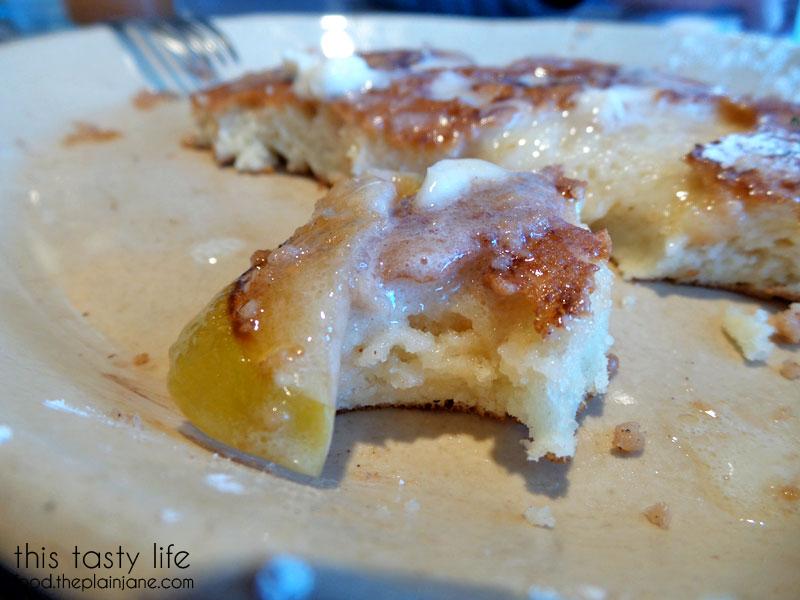 Here’s a little peek at the pancake itself. The pancake was so soft, light and fluffy with a bit of the apple on the left. The apples had the skin still on but was soft enough to match with the pancake. So good!
