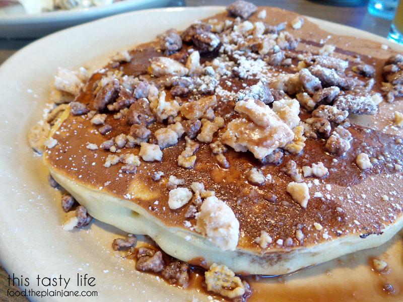 I also selected the pancake of the day for another sweet treat for us. This was probably the only “miss” for us that day. It was a buttermilk pancake topped with “muddy buddies” or “puppy chow” – you know, that sweet stuff they make with Chex, peanut butter, chocolate and powdered sugar. That was sprinkled on top and it tasted kinda of old and stale on top of the pancake and just made it too sweet overall. It was only a daily special though so at least they’re always trying out new flavors to see what works and what doesn’t.