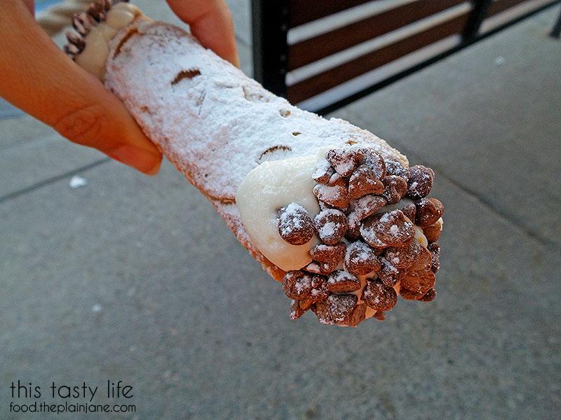 Jake wasn’t in the mood to wander so I ended up going to Napizza and getting a cannoli filled with a sweet, creamy ricotta cheese and tons of little chocolate chips on the end. Don’t get me wrong – it was really good – but when you have your heart set on something, everything else just seems disappointing. I was emotionally disappointed but don’t let that fool you – in any normal circumstance I would have loved this thing.